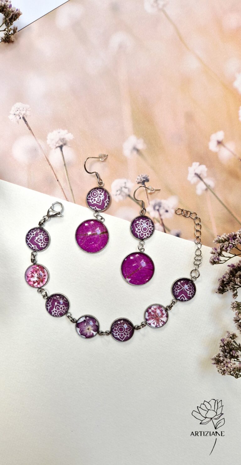 Chez Artiziane, chaque bijou est une célébration de la nature et du savoir-faire artisanal. Je travaille de vraies fleurs pressées pour créer des pièces douces, lumineuses et authentiques.